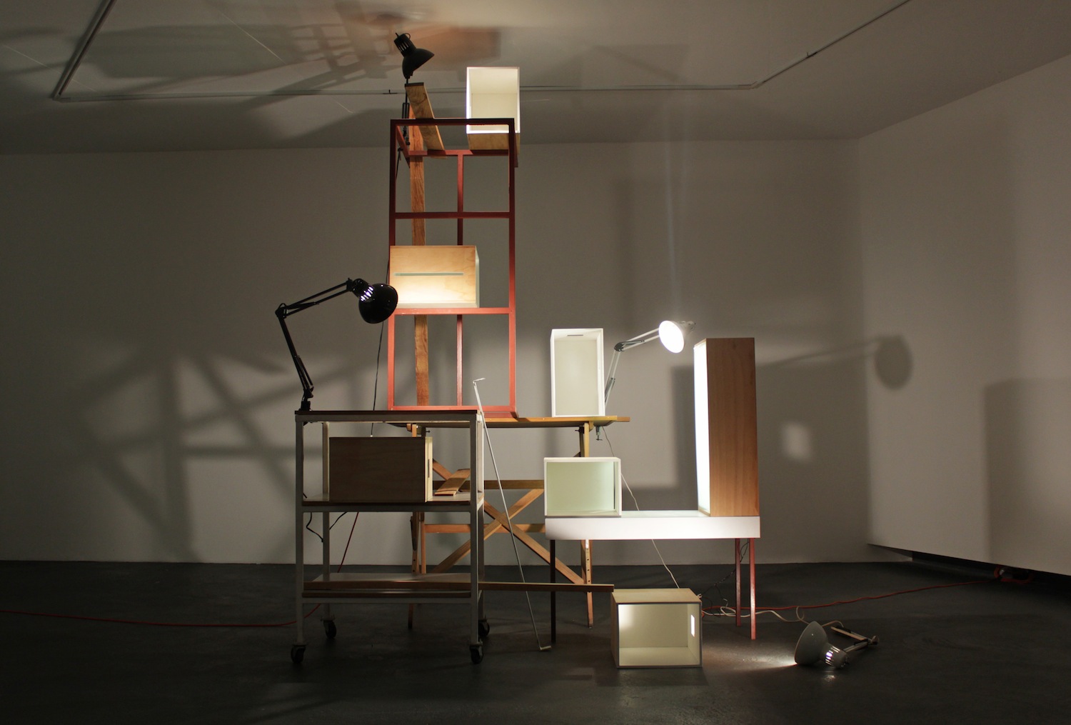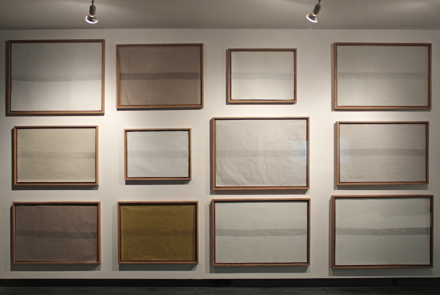 Un gran pliego de papel levemente intervenido con dos pilas de papel creando curvas de resistencia, una línea de carbón hecha de la misma manera en 12 distintos tipos y tamaños de papel, así como una escultura totémica que busca hacer juegos de sombras así como re valorar el estatus de los materiales usualmente utilizados como medios para la creación, cuestionan los pilares de la producción industrial revirtiendo sus premisas al lograr, a través de un máximo esfuerzo, un mínimo resultado.