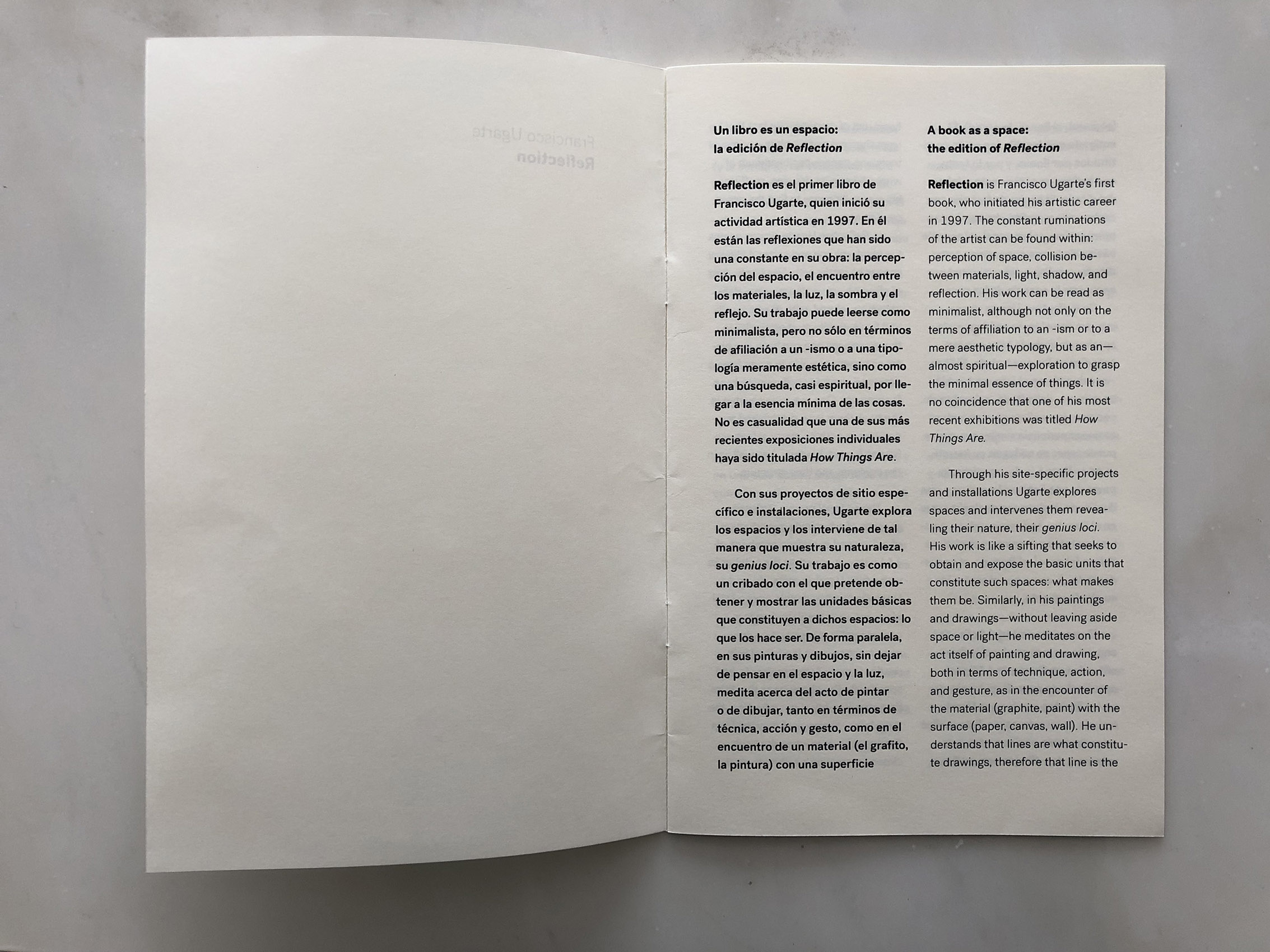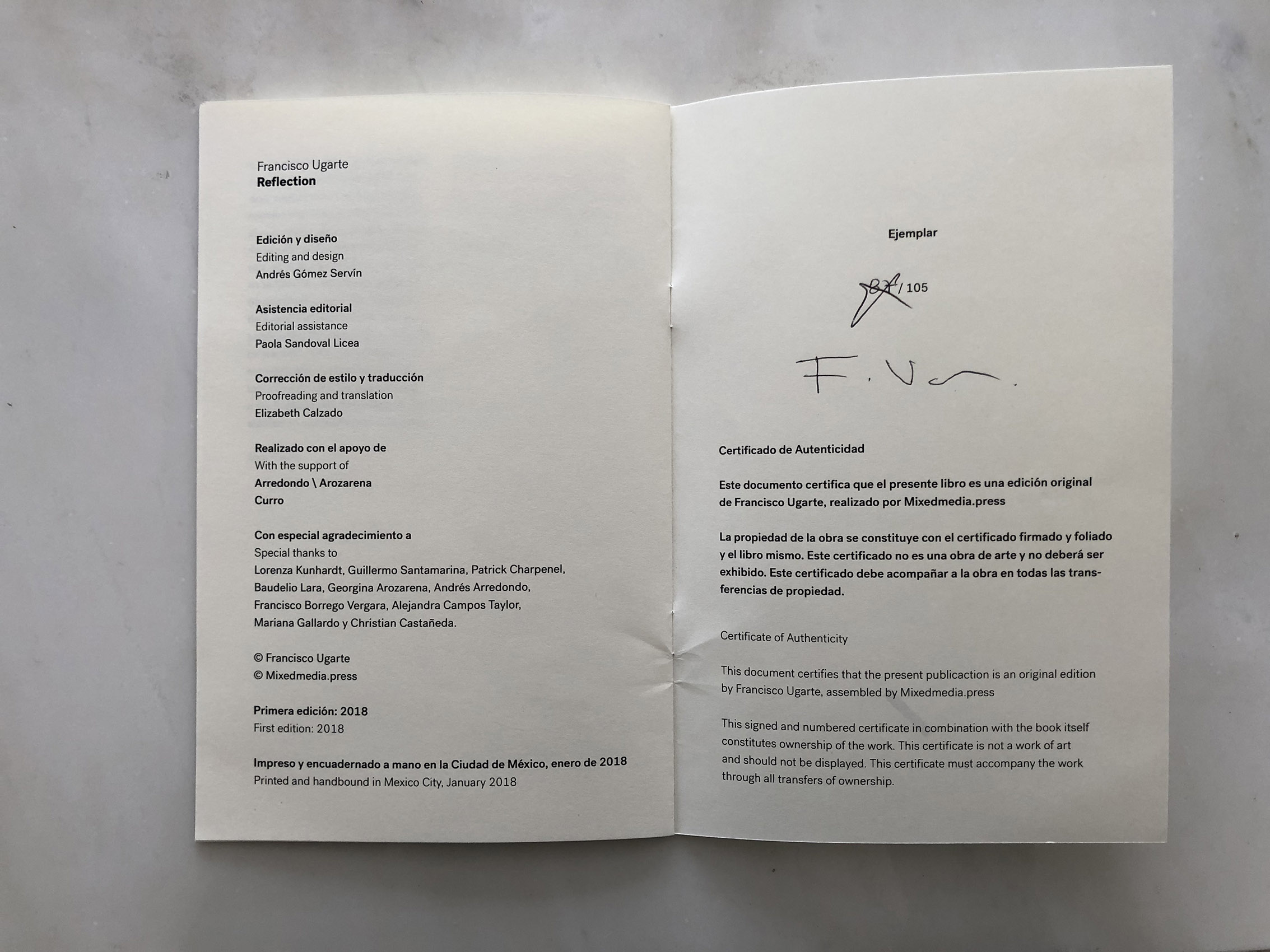 Publicación del libro REFLECTION Editado por MIXEDMEDIA . PRESS. Producido por Galería Arredondo \ Arozarena, Galería CURRO, y Francisco Ugarte. (2018)