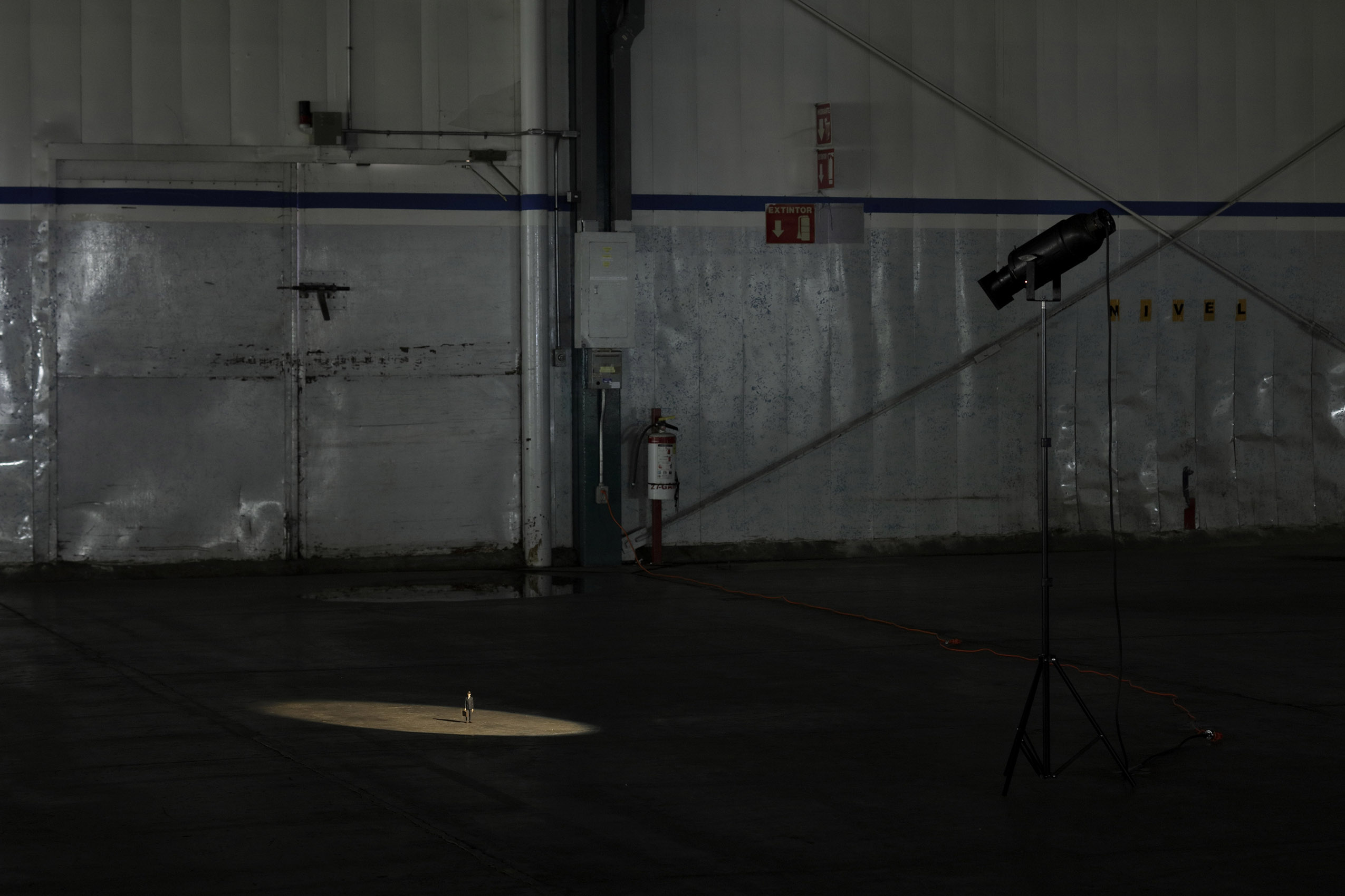 Proyectir de luz y figura humana hecha de yeso y pintura acrílica