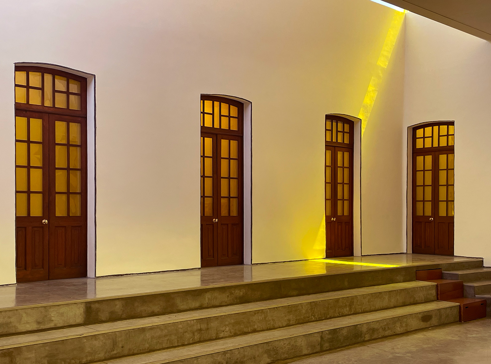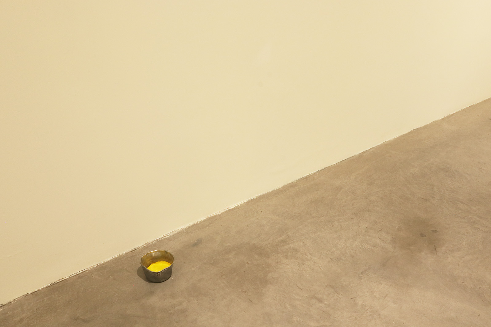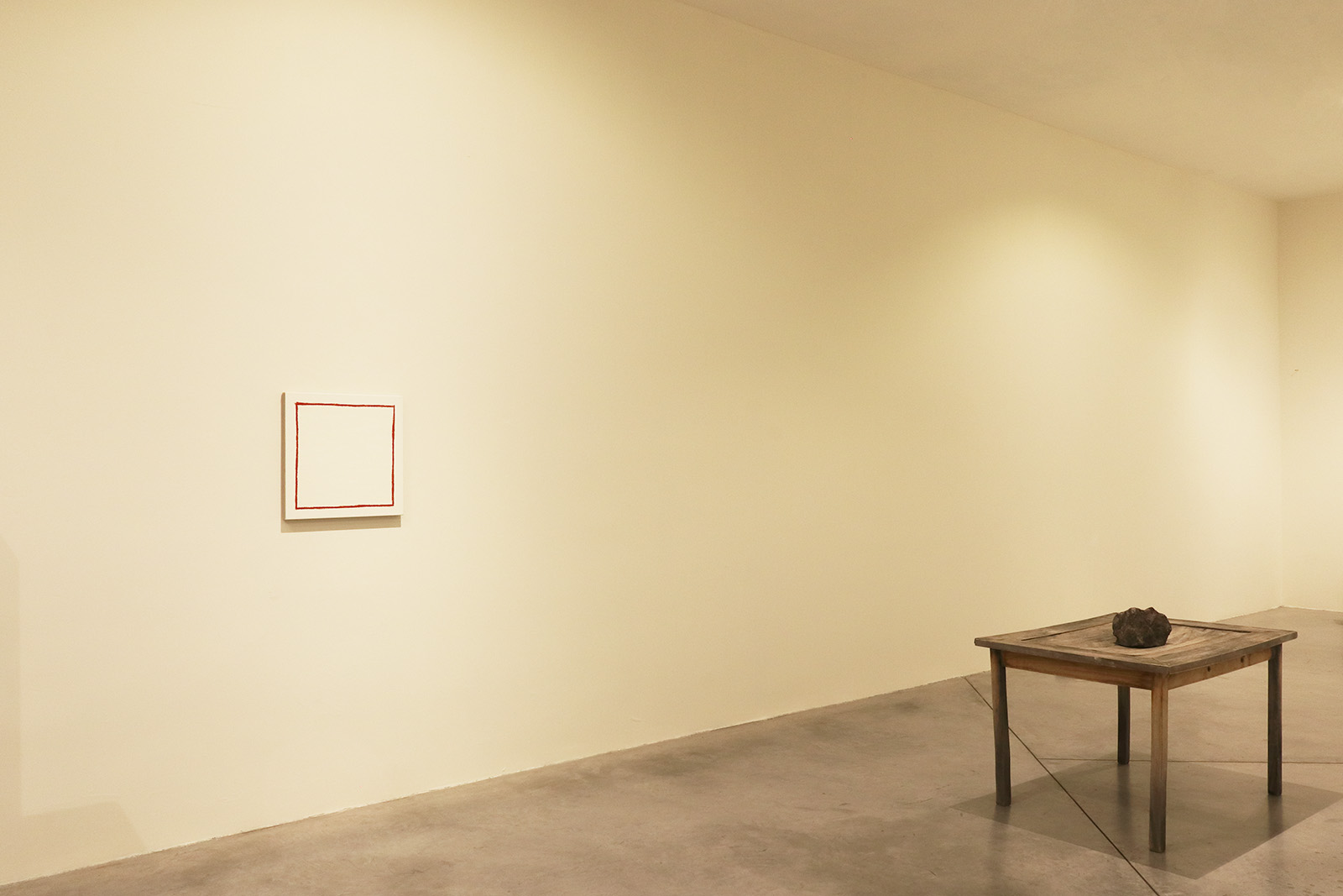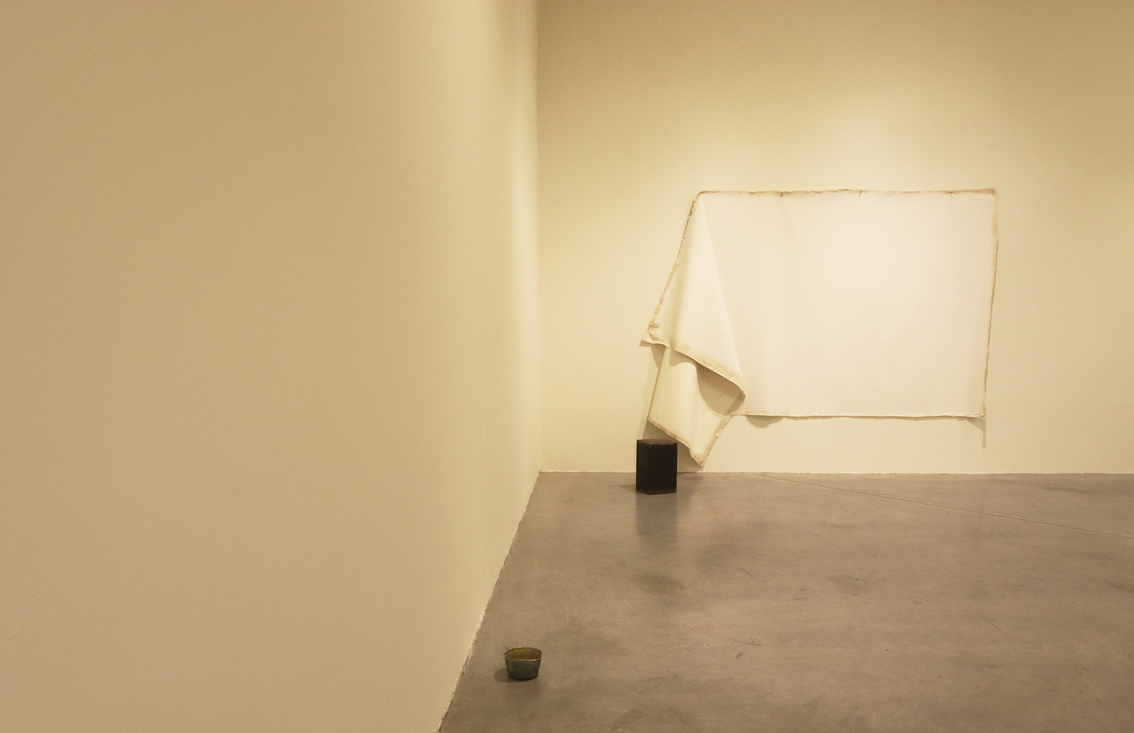 El grupo de obras aquí propuesto tiene una extraña unidad, a pesar de la aparente disparidad de sus componentes. Desde una línea amarilla que cruza el patio del recinto, imantándolo entero, hasta un resplandor dorado que provoca la luz transfigurada con extrema sencillez.